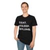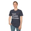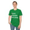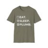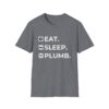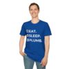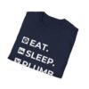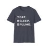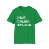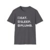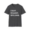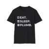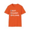 The Eat. Sleep. Plumb. T-Shirt with Icons is available in a variety of colours including black, orange, green, blue, purple and red.